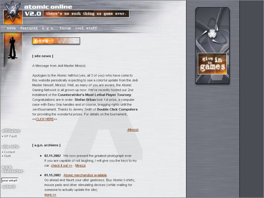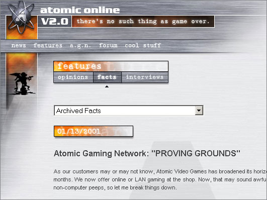 Delivery: Internet Here's the second iteration of the Atomic website, now geared to focus more on the store's LAN gaming than its console products.