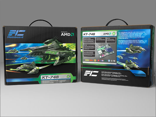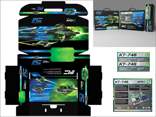 Delivery: Print files and package mockup 3D illustration and print design for a line of FIC motherboards supporting AMD processors.