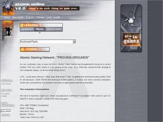 Delivery: Internet Here's the second iteration of the Atomic website, now geared to focus more on the store's LAN gaming than its console products.